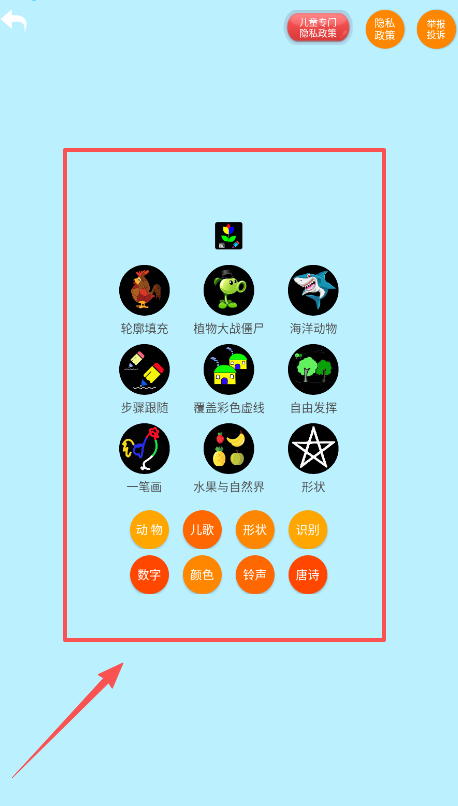 1、丰富多样的绘画工具,涵盖线条,颜色和填充功能,能满足孩子的各种绘画需求。