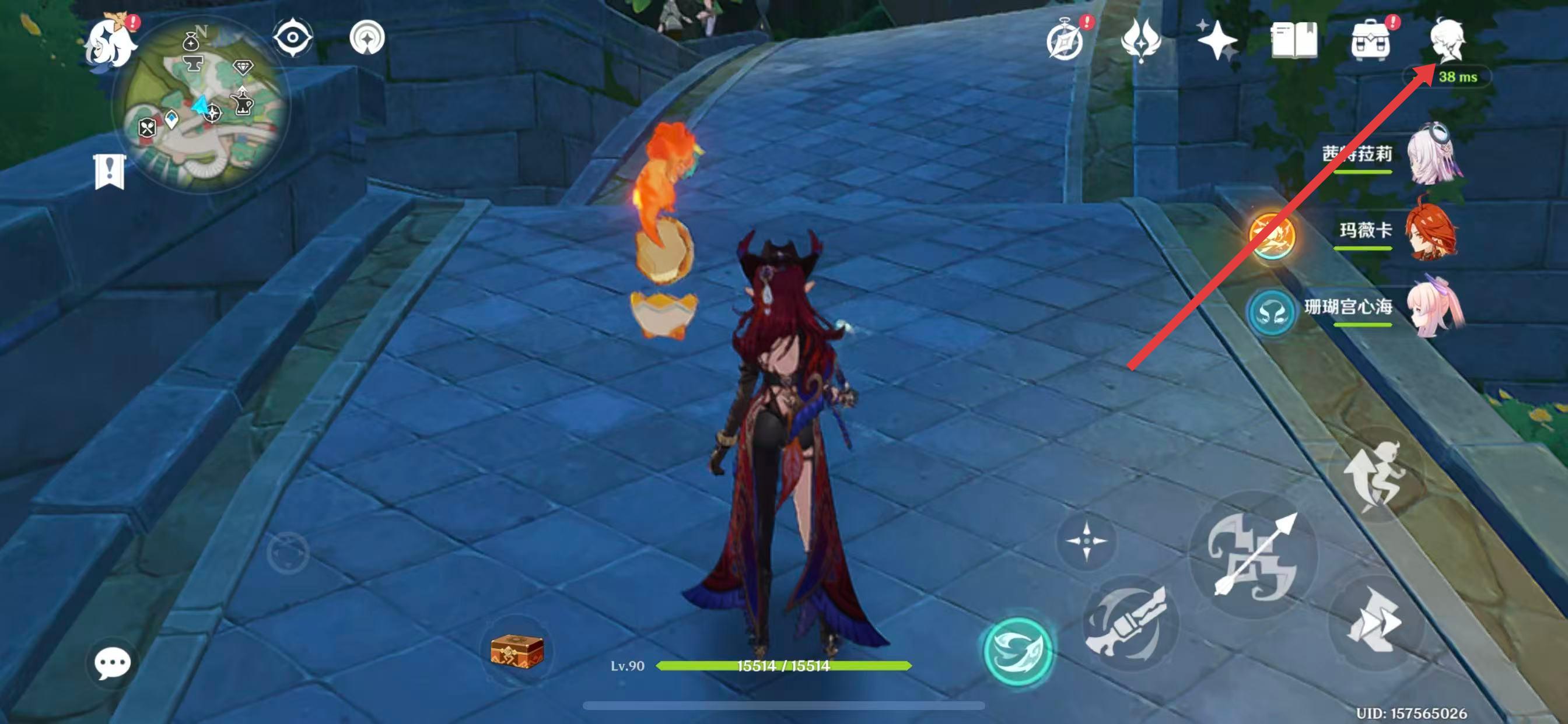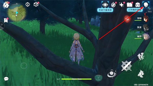 1、在云原神游戏主界面,点击右上角打开角色界面,进入角色选择页面。