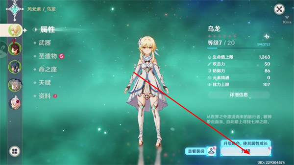 2、在角色界面中,选择要升级的角色,点击升级进入角色升级页面。