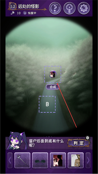 3、将物品拖入合成区域,尝试合成道具,推进解谜进程。