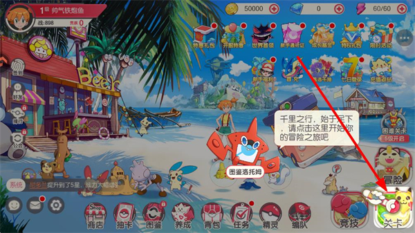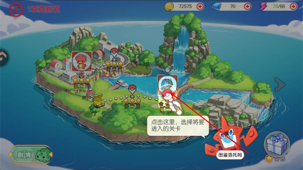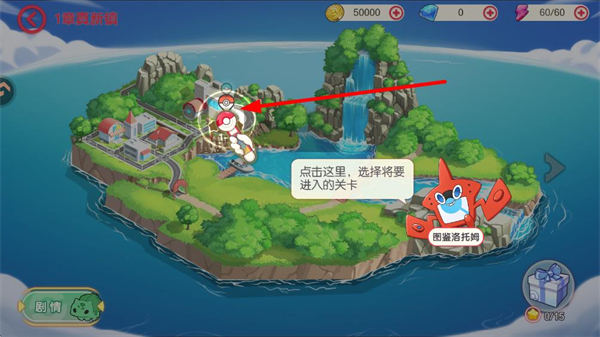1、进入口袋觉醒界面,找到右下角关卡选项并点击,进入章节地图界面。