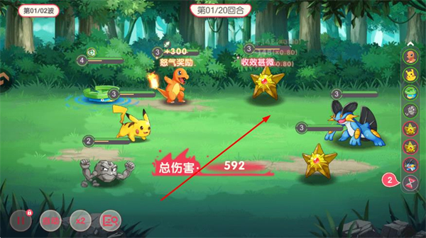 3、战斗过程中,精灵会自动释放技能,击败敌方单位后推进战斗进度,直至胜利。
