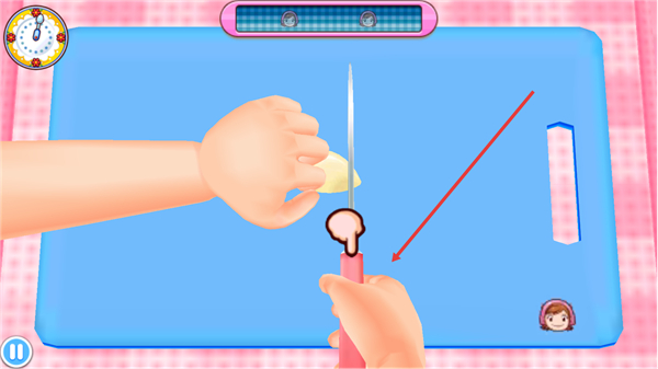 2、开启制作后会进入切食材等操作界面,点击对应的食材处理工具,进入具体的食材操作步骤,准备完成菜品所需的基础食材处理工作。