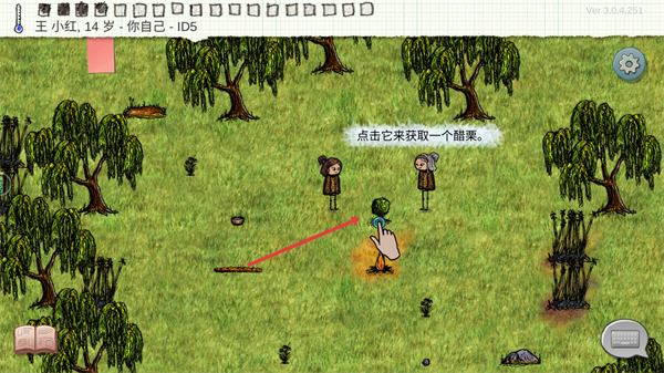 2、跟随角色提示,点击场景内的植物,即可获取食物类资源,积累生存所需的物资,满足角色的基础生存需求,维持生存状态。