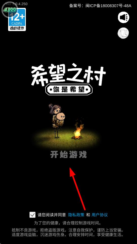 1、实名认证后,勾选请您阅读并同意隐私政策和用户协议,点击开始游戏,进入游戏流程。
