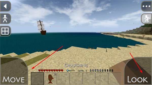 2、进入游戏后,通过左侧MOVE区域控制角色移动,右侧LOOK区域调整视角。