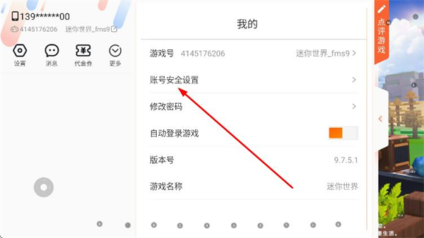 2、找到账号安全设置并点击,弹出账号与安全提示框。
