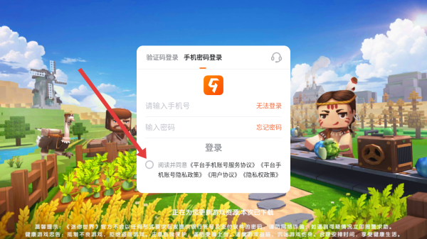 3、在切换好登录方式,需先点击勾选阅读并同意按钮后操作。
