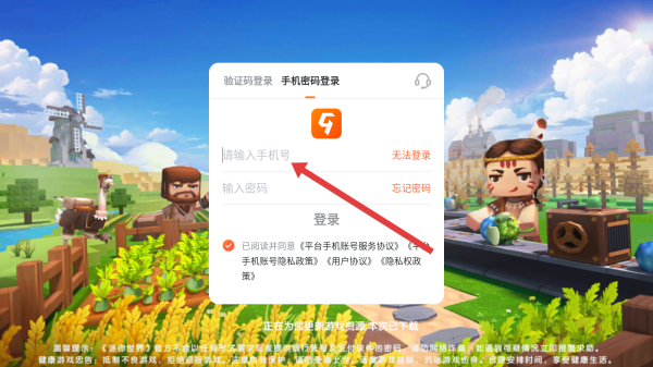 4、在勾选好同意按钮后,点击上方输入框依次填写手机号和密码,即可完成登录操作。