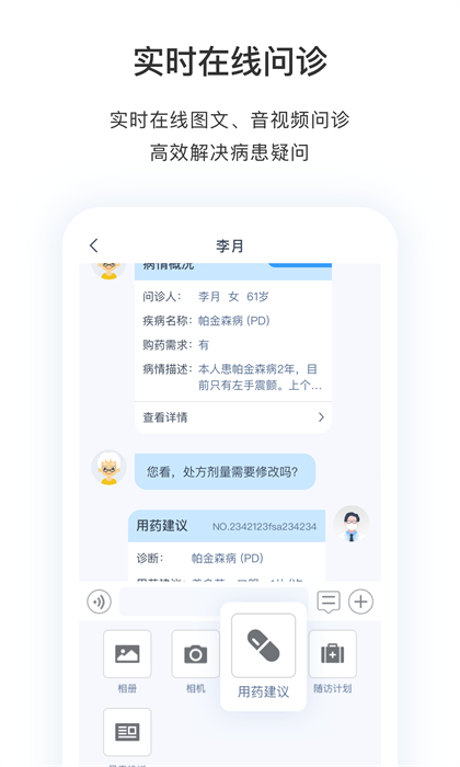 实时在线图文、音视频问诊,高效解决病患疑问