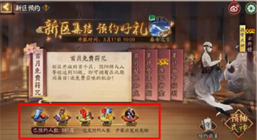 2、新区抽卡:新区开放之后,每天都送有十连抽,可以在这里抽取各种各样的式神,开服就可以获取式神。