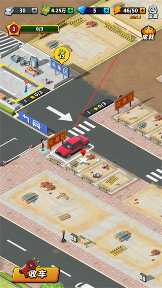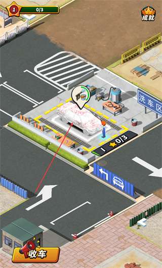 4、引导完成清洁的车辆驶出场地,停入指定区域,推进关卡进度。