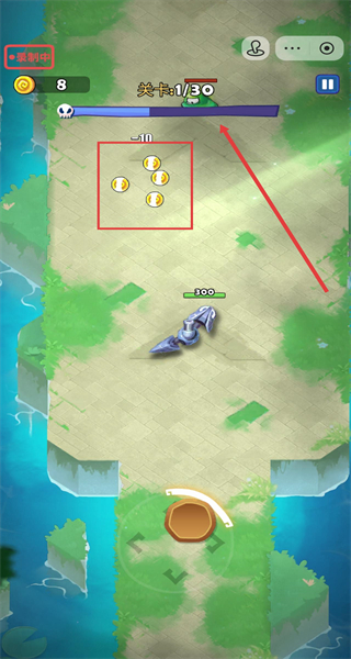 2、操控角色灵活走位,利用自动攻击功能击败敌人,同时收集场景内的金币,积累资源。
