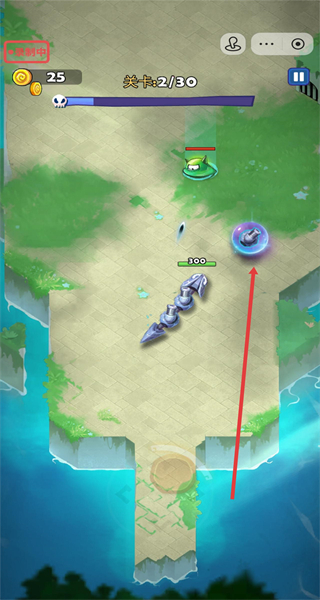 3、拾取紫色道具,解锁新炮台,使炮台长度增加,扩大攻击覆盖范围,增强闯关能力。