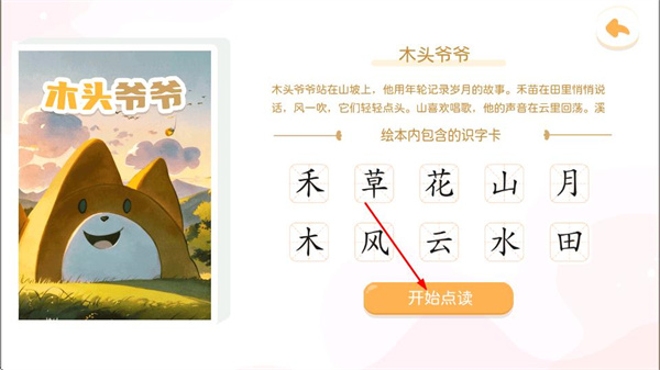 3、在绘本详情页,点击开始点读按钮,可进入绘本的点读阅读页面。