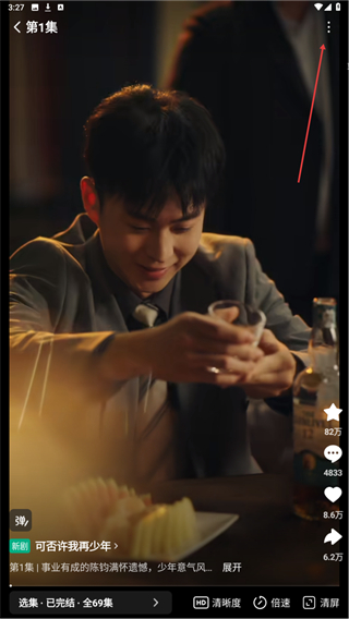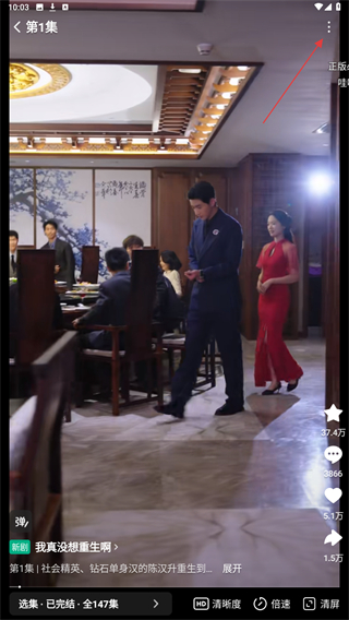 3、进入播放的页面内,点击右上三个点的功能按钮。