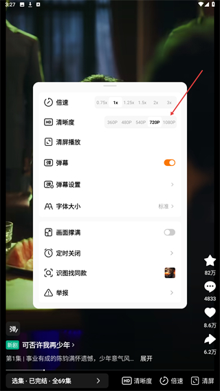 ④、挑选画质,灵活选择适合自己的画质,既保证了流畅播放,又能够提供高清的视觉享受。
