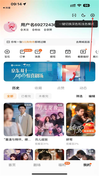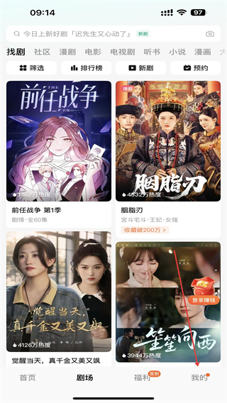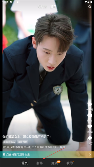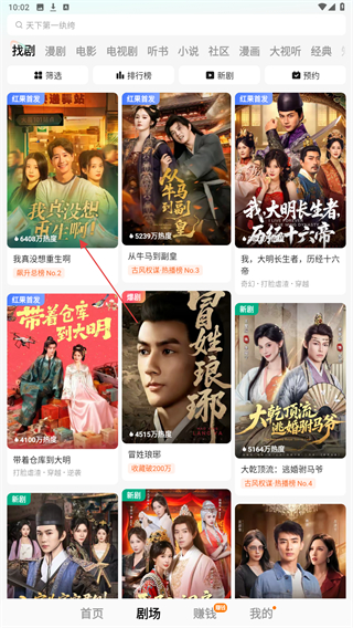 1、启动红果App,进入首页点击底部剧场的按钮。