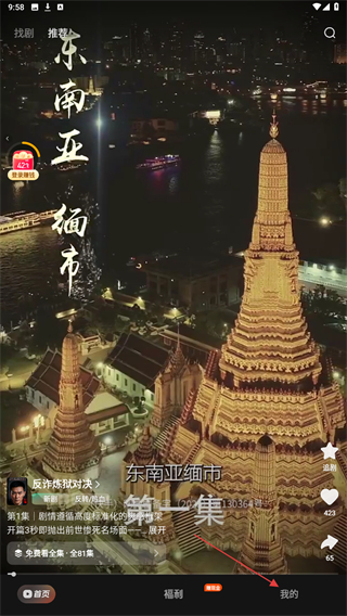 1、启动喜番短剧的APP,进入首页点击下方我的按钮。