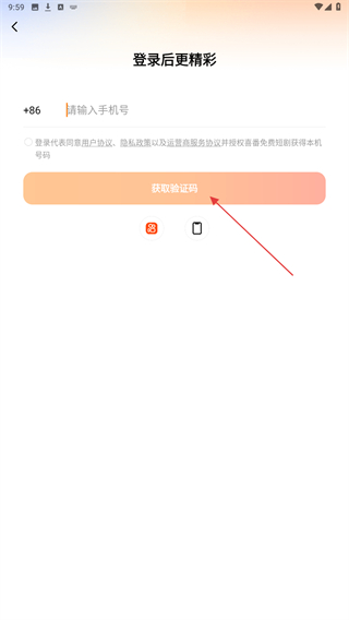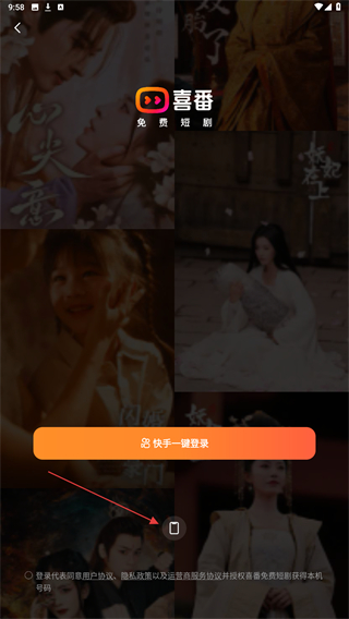 3、进入登录的页面内,点击手机的图标跳转至登录页面。