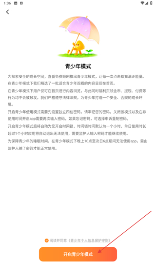 4、了解该模式的规则后,点击开启青少年模式即可。