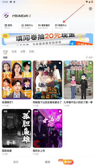 2、进入个人主页内,找到并点击客服中心的按钮。