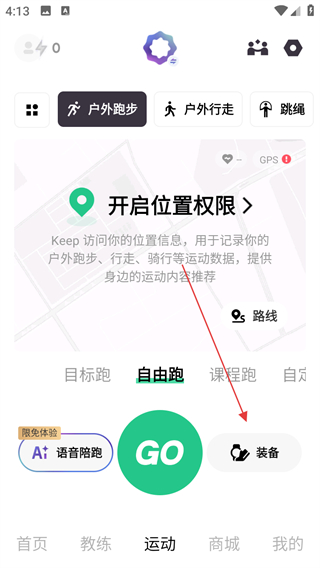2、在运动页面,点击装备选项。