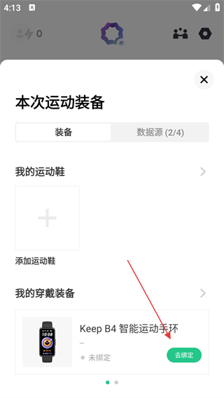 3、在本次运动装备页面找到对应的手环,点击去绑定。