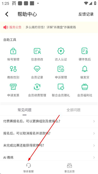 3、在帮助中心页面点击底部的“联系客服”按钮,进入Keep客服对话页面。