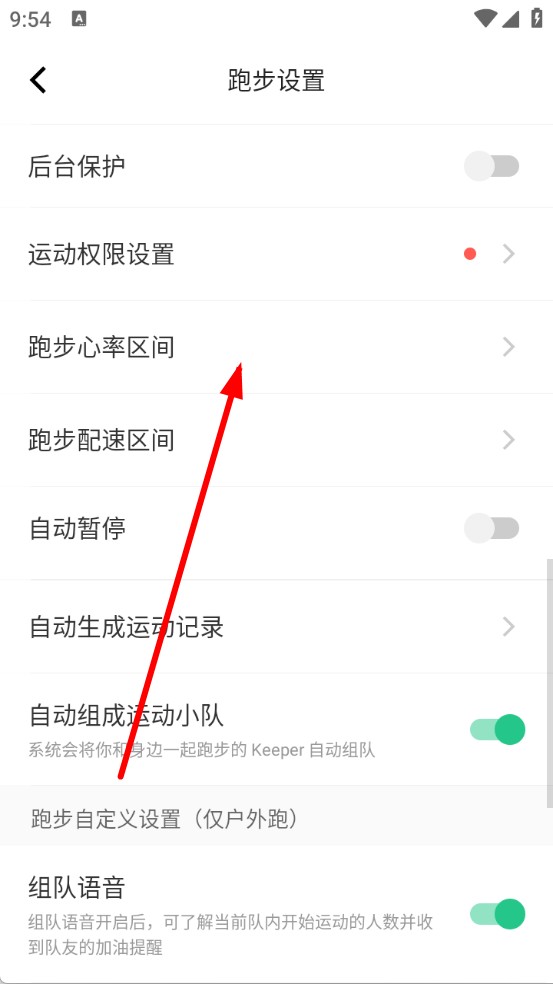 1、打开Keep,进入跑步设置界面,点击跑步心率区间选项。