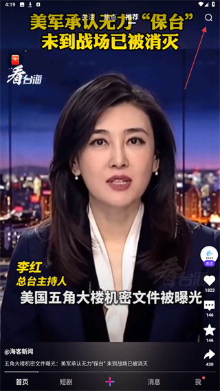 1、打开微视的APP,进入时点击右上方搜索的按钮。