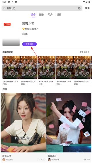 3、搜索结果出来后,找到目标视频点击立即追击即可。