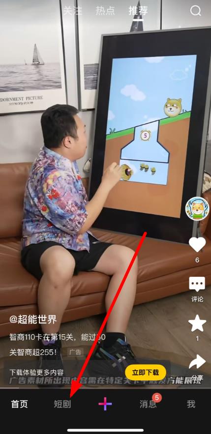 3、在搜索框里面可以输入自己想要观看的短视频或者是短剧;