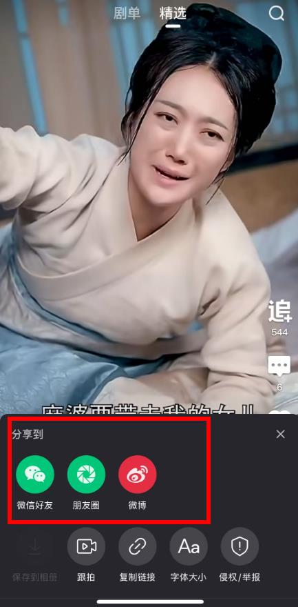 3、在弹出的分享选项中,选择微信好友,朋友圈,微博等渠道,分享短剧内容。