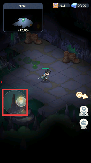1、在河洞区域,利用左侧操作摇杆移动,逐步推进古墓探索进度。