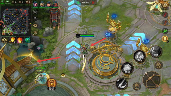 4、配合小兵攻击【防御塔】,摧毁敌方大本营。