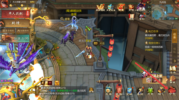 1、在游戏界面,点击右下角【背包】。