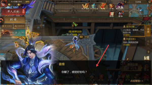 3、进入游戏,接取右侧【混沌初醒】任务。