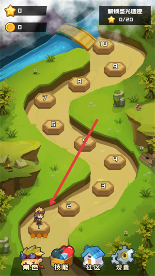 1、进入游戏主界面,点击关卡图标,进入关卡场景。