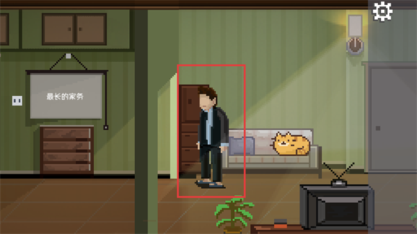 3、进入房间后,与角色交互触发任务,留意场景中的【最长的家务】提示,明确当前目标。