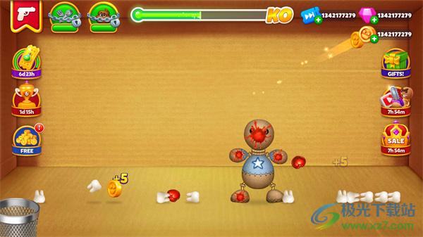1、攻击木偶人时收集场景内的金币道具,同时消耗其上方【绿色-血量条】,推进战斗进程。