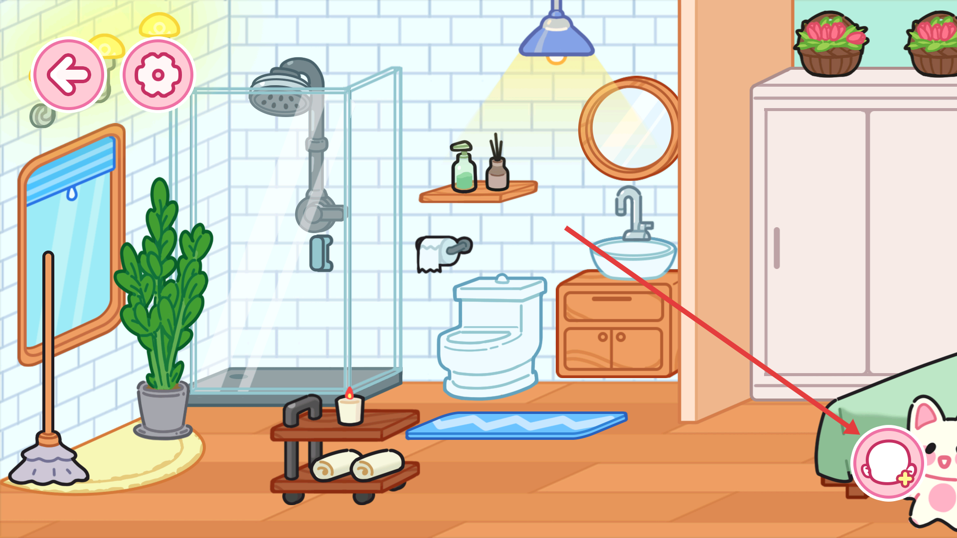 1、在场景页面点击右下角互动按钮,可触发功能入口展开,用于进入角色装扮等操作环节。