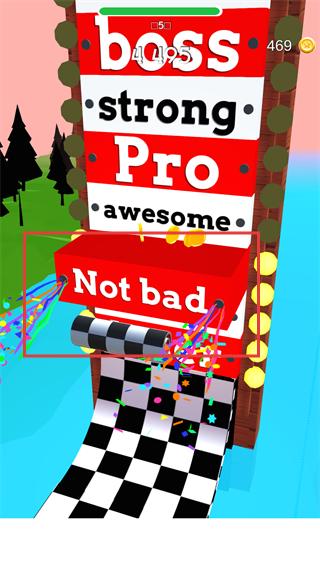 4、抵达终点后触发【Not-bad】评价,最终金币数达【469】,可通过商城升级工具提升后续收益。