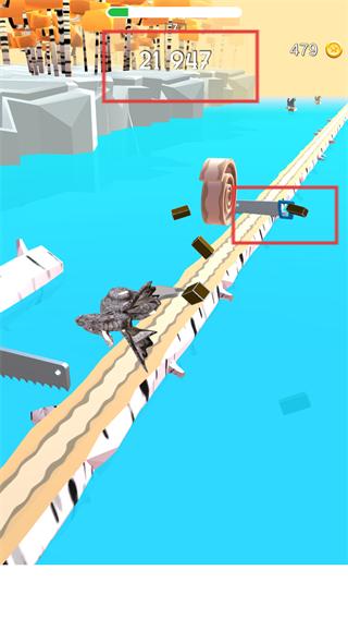 1、操控工具沿木板推进,收集沿途道具并积累分数,将初始分数提升至【21947】,保持金币数稳定。