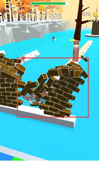 3、撞击并破坏堆叠的方块结构,进一步积累分数至【37095】,完成当前阶段的凿木进程。