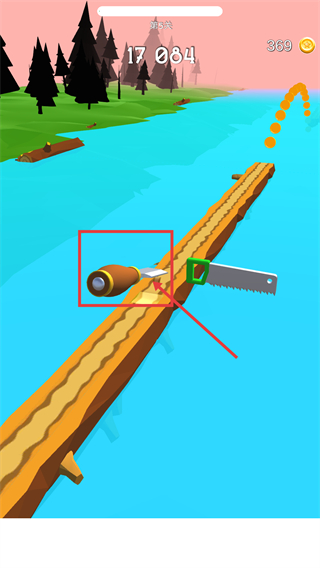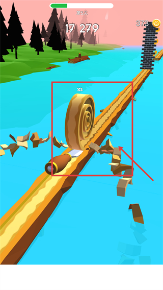 2、切削时获取被框选的【×3】道具,分数提升至【17279】,持续沿木板推进,避开障碍保持切削节奏。