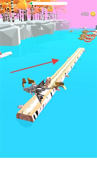 1、操控工具沿木板推进,收集沿途道具的同时积累分数,将初始分数提升至【14531】。