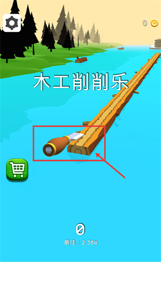 1、在【木工削削乐】关卡中,操控被框选的工具沿木板移动,通过切削木板推进关卡,积累进度向终点前进。