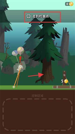 3、开启新任务【走到-第二个-检查点】,操控角色继续移动,向第二个检查点的方向推进,保持平衡避免失误。