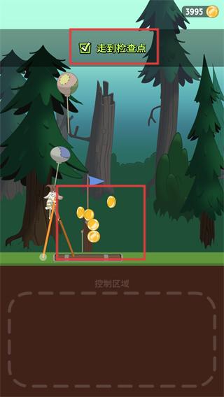 2、成功移动至检查点,完成【走到-检查点】任务(显示对勾),同时收集沿途金币,当前金币数累积至【3995】。
